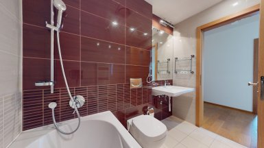 Prenájom luxusného 4 izb. bytu na Strážnej ul. v rezidenčnom bytovom projekte PARKVILLE v atraktívnej lokalite v tesnej blízkosti lesoparku Koliba, v mestskej časti BA III - Nové Mesto, kat. územie Vinohrady. ==== Byt je situovaný na 3/4 posch. s výťahom s unikátnymi výhľadmi na mesto, k bytu patrí jedno garážové stojisko v suterénnej garáži domu v cene prenájmu (druhé garážové stojisko je za príplatok 60,- eur mesačne). =======================================0 Výmera podlahovej plochy bytu je 100m2 + plocha terasy 15m2 Terasa má dva vstupy, z obývačky aj z jedálenskej časti. ==== Byt dispozične pozostáva zo vstupnej časti, haly, 3 samostatných izieb/spální, obývačky integrálne prepojenej s jedálenskou časťou, kuchyne s elegantnou kuchynskou linkou, ktorá je čiastočne oddelená posuvnými dverami. K dispozícii je komfortná kúpeľňa s vaňou, sprchovým kútom a WC, plus hosťovské WC s umývadlom situované v chodbe. V byte sa nachádza samostatný šatník a komora, dve spálne sú vybavené vstavaným šatníkovým systémom rolldoor. ==== Bonusom bytu je: - priestranná TERASA 15m2 po celej dĺžke obývačky a jedálne s unikátnym výhľadom na panorámu mesta; - dve garážové stojiská v suterénnej garázi domu (1. GP v cene prenájmu, 2.GP za príplatok 60,- € mesačne) ==== Bytový dom sa nachádza v tesnej blízkosti lesoparku Koliba s možnosťami športových a rekreačných aktivít počas celého roka. ==== Byt je k prenájmu ihneď voľný, je vhodný aj pre náročného klienta. Vďaka blízkosti lesoparku je vhodný aj pre rodiny s deťmi. ==== K inzerovanej mesačnej cene prenájmu bytu (vrátane 1 garážového státia) 1550,- eur bude pripočítaná zálohová platba za energie a služby vo výške 450,-eur /4 osoby. Druhé garážové státie je za príplatok 60,- eur mesačne. Platí sa depozit a provízia pre RK. ==== Volajte alebo píšte ešte dnes, obhliadku radi zabezpečíme, aj cez víkend tel: 0905 450 900, 0905 100 105 e-mail: monika.novakova@ivmoreal.sk ==== © Text, fotografie a 3D virtuálna prezentácia sú autorským dielom a majetkom realitnej kancelárie IVMO-real, s.r.o.