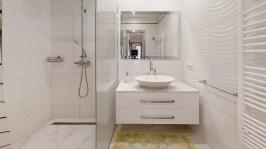 Prenájom nadštandardného veľkometrážneho 3izb. bytu s vlastným BAZÉNOM, záhradou, plus 2x PARKING v novostavbe bytového domu na Mozartovej ul., v exkluzívnej lokalite v blízkosti Horského parku, BA I - Staré Mesto. Byt je situovaný na prízemí bytového domu s "kaskádovými" terasami, každé podlažie je "ustúpené", čo zabezpečuje pre vlastníkov jednotlivých bytov maximálne súkromie. Výmera podlahovej plochy bytu vrátane príslušenstva je 150m2, plus záhrada. K bytu patria dve vyhradené parkovacie stojiská na parkovisku priamo pred domom v cene prenájmu. Byt je orientovaný na dve strany s prevažujúcou západnou orientáciou, je svetlý a slnečný aj vďaka zasklenným plochám v dennej časti bytu. Byt dispozične pozostáva zo vstupnej chodby, haly kuchyne s príjemným výhľadom do záhrady patriacej k bytu, obývačky integrálne prepojenej s presklenenou terasou s výsuvnou markízou na el. pohon, komfortnej jedálne, spálne, pracovne, komory, kúpeľne s praktickým sprchovým kútom, oddelenej toalety a krytej bezénovej časti so vstupom zo spálne aj z terasy. Letná terasa so záhradným nábytkom a záhrada s okrasnou výsadbou sú v sezónnom období ideálnym miestom na relax a príjemné posedenie s rodinou a priateľmi. Interiér bytu je prevedený v harmonickom štýle s dôrazom na prepracovanosť detailov, praktické využitie priestoru a maximálny komfort bývania. Úložný priestor v byte je riešený formou šatníkových systémov rolldoor. Byt má vlastné vykurovanie, vrátane ohrevu bazéna, BAZÉN je s PROTIPRÚDOM. Dom je situovaný v lukratívnej, rezidenčnej lokalite, v ktorej majú sídla mnohé zahraničné obchodné zastupiteľstvá, ambasády a veľvyslanectvá, lokalita je tichá, bezpečná, s množstvom zelene (Horský park). Z lokality je výborný prístup do centra a na diaľničný obchvat. ___________________________________________________ Byt je k prenájmu ihneď voľný, je vhodný aj pre náročného klienta. K inzerovanej cene prenájmu 1100,- eur bude pripočítaná vyúčtovateľná zálohová platba za energie 300,- eur mesačne + poplatok za 2x PARKING 150,- eur. Platí sa provízia pre RK. ___________________________________________________ Volajte alebo píšte ešte dnes, obhliadku nehnuteľnosti Vám radi zabezpečíme, aj cez víkend: tel: +421 905 450 900, +421 905 100 105 e-mail: monika.novakova@ivmoreal.sk, ivmoreal@ivmoreal.sk ___________________________________________________ ©Text, fotografie, pôdorys a 3D virtuálna prezentácia sú autorským dielom a majetkom spoločnosti IVMO-real, s.r.o. a podliehajú autorským právam.