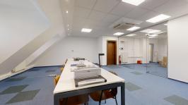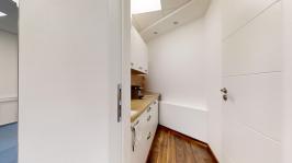 Prenájom kancelárskych priestorov spolu o výmere 135m2 v lukratívnej lokalite centra mesta na Vysokej ulici, BA I - Staré Mesto. Priestory sú situované v novopostavenom polyfunkčnej budove s výťahom. Priestory tvoria samostatný celok nachádzajúci sa na 3.NP, podlahová plocha priestorov je 135 m2 vrátane zázemia, pozostávajú z otvoreného priestoru "OPEN SPACE", 2x sociálne zariadenie a plne vybavenej kuchynky. Priestory svetlé, vzdušné, sú dostupné dvomi vchodmi zo schodiska, je možné ich prenajať do dvoch mesiacov. Vybavenie priestorov: klimatizácia, štrukturovaná kabeláž na PC sieť a internet, vzduchotechnika, metrážové koberce, stropné svietidlá, kamerový a bezpečnostný systém, denné upratovanie, otvárateľné okná so žalúziami, video vrátnik. Budova je prístupná NONSTOP, 24 hodín denne, má vlastnú kotolňu, systém požiarnej ochrany, internet/optika Parkovanie možné formou prenájmu parkovacích stojísk na ulici pred budovou alebo v podzemných garážach Tatracentrum. Cena prenájmu priestorov: 12,00 EUR/m2/mesiac + energie a prevádzkové náklady podľa aktuálnych cenníkov dodávateľov. K inzerovanej cene prenájmu bude pripočítaná DPH(20%). Priestory sú plne klimatizované, je možné ich stavebne a účelovo prispôsobiť požiadavkám klienta do cca 2 mesiacov ( úprava dispozičného riešenia dobudovaním sklenených alebo sadrokartónových priečok....dozariadenie podľa dohody ap.) Priestory majú vysokú flexibilitu a variabilné možnosti komerčného využitia, sú vhodné k prenájmu ako projekčné alebo architektonické štúdio, reklamná, personálna, marketingová agentúra, sprostredkovateľské a finančné služby, školiace stredisko, jazykovka atď. PODORYS a ďalšie info NA VYŽIADANIE v RK. © Text a fotografie sú autorským dielom a majetkom realitnej kancelárie IVMO-real, s.r.o. a podliehajú autorským právam Volajte alebo píšte ešte dnes, obhliadku priestorov pre Vás radi zabezpečíme, aj cez víkend. tel: 0905 450 900, 005 100 105 e-mail: monika.novakova@ivmoreal.sk, ivan.hojda@ivmoreal.sk