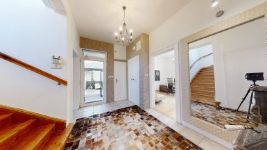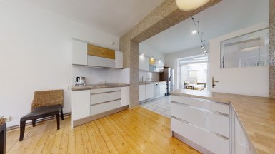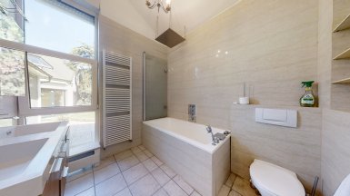 Prenájom exkluzívneho, plne zariadeného dvojpodlažného samostatne stojaceho 7 izb. rodinného domu, /vila/ s komfortným príslušenstvom, v tichom prostredí Vinohradov v mestskej časti BA III - Nové Mesto, Pezinská ul. ***** Dom pozostáva zo 7 izieb a príslušenstva, výmera podlahovej plochy domu je 350m2 + TERASA 20m2, dom sa nachádza v bezprostrednej blízkosti malokarpatských viníc s výhľadom na južné svahy Malých Karpát. K domu patrí záhrada so záhradnou terasou a automat. závlahou, plus 2 vyhradené PARKOVACIE STÁTIA pod prístreškom na pozemku + parking na ulici pred domom. K vybaveniu domu patrí ochladzovací bazén, sauna (suchá aj parná), zimná záhrada, práčovňa, miestnosť s biliardovým stolom, hlavná spálňa s vlastnou kúpeľňou, hobby miestnosť..... videovrátnik s diaľkovým ovládaním otvárania všetkých vstupných, resp. vjazdových brán, v každej obytnej miestnosti je zavedený najrýchlejší internet cez optický kábel ORANGE na 10 GIGA PC sieť. V interiéri boli použité nadštandardné materiály s dôrazom na prepracovanosť detailov, dizajnový nábytok, značková sanita.... V dome sú tri komfortné kúpeľne a 4 wc, v suteréne je práčovňa a dve sauny s ochladzovacím bazénom. Dom má kvalitnú nízkoenergetickú konštrukciu a s tým spojené nízke prevádzkové náklady na réžiu domu. V dome sú nainštalované veľkorozmerné okná s trojsklami, kvalitné interiérové dvere s obložkovými zárubňami, k vybaveniu domu patrí elegantná kuchynská linka so zabudovanými spotrebičmi s dostatkom úložného priestoru. ***** Vila sa nachádza v bezprostrednej blízkosti malokarpatských viníc, avšak s výbornou dostupnosťou do centra mesta (cca 15-20 min. autom v rannej špičke), resp. na diaľničné obchvaty. Dom je vhodný k prenájmu pre náročného klienta. K prenájmu je dom voľný od 01.03.2025, je ideálny aj pre zahraničnú rodinu s deťmi. Psík so zvládnutými hygienickými a sociálnymi návykmi nie je prekážkou. ___________________________________________________ K inzerovanej cene prenájmu 2.600,- eur mesačne bude pripočítaná vyúčtovateľná zálohová platba za spotrebu energií 450,- eur + záhradník 50 / mesačne. Platí sa provízia pre RK. ___________________________________________________ Volajte alebo píšte ešte dnes, obhliadku nehnuteľnosti Vám radi zabezpečíme, aj cez víkend: tel: +421 905 450 900, +421 905 100 105 e-mail: monika.novakova@ivmoreal.sk, ivmoreal@ivmoreal.sk ___________________________________________________ COPYRIGHT IVMO-real, s.r.o. – Fotografie, obrázky, texty a 3D virtuálna prezentácia sú autorským dielom a majetkom realitnej kancelárie IVMO & Partners, s.r.o.