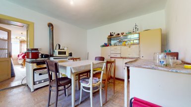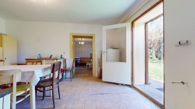 Predaj rodinného domu/chalupy so všetkým príslušenstvom s pozemkom o výmere 856 vrátane zastavanej plochy v katastri obce Zemianska Olča, okres Komárno. Dom je samostatne stojaci, nepodpivničený, jednopodlažný murovaný objekt so šikmou sedlovou strechou, bez zabudovaného podkrovia, nachádza sa v blízkosti centra obce Zemianska Olča. Dom bol podľa dostupných informácii skolaudovaný v r. 1905. Stavba počas užívania bola primerane udržiavaná, opravovaná, modernizovaná a v súčasnosti je v zachovalom stave. Dom pozostáva z dvoch izieb (26,5 m2 a 14 m2), kuchyne (17,5 m2), špajzy (4 m2), skladu (7,5 m2) a komory (20 m2). Vstup do obytnej časti domu je možný samostatne cez kuchyňu a z nej potom do obidvoch izieb a do špajze, pričom vchod do komory je aj samostatne z východnej strany stavby; medzi nimi sú dvere na schody k povale. Na pozemku sa nachádza drobná, murovaná stavba (pivnica a náraďovňa) a trvalé porasty. Pozemok je oplotený zo všetkých strán. Dom má prípojku elektriny, v južnej časti pozemku je v šachte umiestnená prípojka k obecnému rozvodu vody; na pozemku funkčná studňa, z ktorej je možné pomocou elektrického vodného čerpadla ťahať vodu na zavlažovanie pozemku. Dom je napojený na elektrickú prípojku 3-fázového prúdu cez v zemi zakopaný kábel. Pripojenie zemného plynu k domu je možné cez obecnú plynovú prípojku, doposiaľ však nebolo zrealizované, vzhľadom na sezónne užívanie stavby ako chalupy. Kúrenie v dome bolo pôvodne zabezpečené ústredným kúrením s kotlom na pevné palivo, aktuálne objekt nie je vykurovaný, avšak po inovácii kotla s jeho opätovným pripojením na vykurovací okruh by ústredné kúrenie mohlo byť znova obnovené. Na pozemku je vybudovaná žumpa s objemom 5,6 m3. Objekt je dlhšiu dobu neobývaný a je odpojený z odberu médií. Chalupa sa nachádza v centre obce Zemianska Olča, ktorá sa nachádza neďaleko od Termálneho kúpaliska Veľký Meder a mnohých ďalších zaujímavých lokalít pohodlne dosiahnuteľných aj na bicykli. V obci je niekoľko historických pamiatok, barokovo-klasicistická stavba reformovaného kostola, kúria Adolfa Holczera z konca 19.stor., ako aj eklektická stavba hrobky rodiny Galambošovcov.... Objekt je vhodný na kúpu aj ako chalupa. INZEROVANÁ CEN A JE VRÁTANE PROVÍZIE PRE RK ___________________________________________________ Volajte alebo píšte ešte dnes, obhliadku nehnuteľnosti Vám radi zabezpečíme, aj cez víkend: tel: 0905 450 900, 0905 100 105 e-mail: monika.novakova@ivmoreal.sk, ivmoreal@ivmoreal.sk ___________________________________________________ ©Text, fotografie, pôdorys a 3D virtuálna prezentácia sú autorským dielom a majetkom spoločnosti IVMO-real, s.r.o. a podliehajú autorským právam.