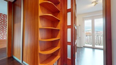 Prenájom nadštandardného 2,5 izb. bytu s nezameniteľnou atmosférou a s unikátnym výhľadom na kostol Sv. Alžbety na Hollého ul. v absolútnom centrum Starého Mesta. Byt je situovaný na 5/5p. tehlového bytového domu s VÝŤAHOM po celkovej revitalizácii fasády a vnútorných priestorov, bytový dom je zateplený, s novozrekonštruovanými vnútornými priestormi, má nový vchod, schránky a výťah..... Výmera podlahovej plochy bytu je 76m2 vrátane loggie 8m2 s nádherným výhľadom do okolia a malého balkóna, tretia izba je menšia cca 8,2m2, viď priložený pôdorys. Byt bol zrekonštruovaný, vrátane výmeny elektroinštalácie a rozvodov.... K dispozícii je novšia kuchynská linka so zabudovanými spotrebičmi vrátane umývačky riadu a pračky, minimalistická kúpeľňa so sprchovým kútom a toaleta sú oddelené. V byte je vstavaný šatník v chodbe a v jednej zo spální, atmosféru bytu dotvárajú tehlové obklady. Byt je plne KLIMATIZOVANÝ. Bytový dom sa nachádza v absolútnom centre mesta v blízkosti Kamenného nám, oproti kostolu Sv. Alžbety, v pešej dostupnosti k Dunajskému nábrežiu a OC EUROVEA. V okolí domu je vynikajúca občianska vybavenosť charakteristická pre centrálne zóny miest. V blízkosti domu je zastávka MHD (električka na Špitálskej ul.) Byt je k prenájmu ihneď voľný, je vhodný na bývanie pre max. dve osoby alebo pár s jedným dieťaťom. Dozariadenie bytu nábytkom je na náklady nájomcu. Možnosť prenájmu bytu aj ako HOME OFFICE pre menšiu firmu s podnikateľskými aktivitami administratívneho charakteru (projekčné štúdio, reklamná agentúra, advokátska kancelária, brookerské služby ap.) Byt nemá zabezpečené vlastné parkovacie miesto, parkovanie je možné na verejnom platenom parkovisku na Kamennom nám. alebo na Špitálskej ul. (aj dlhodobý prenájom). K inzerovanej cene prenájmu 690,- eur bude pripočítaná vyúčtovateľná zálohová platba za energie 160,- eur podľa výmeru od správcu bytového domu. Poplatok za spotrebu elektriny si hradí nájomca prihlásením odberu na svoje meno. Platí sa provízia pre RK. ___________________________________________________ Volajte alebo píšte ešte dnes, obhliadku nehnuteľnosti Vám radi zabezpečíme, aj cez víkend: tel: +421 905 450 900, +421 905 100 105 e-mail: monika.novakova@ivmoreal.sk, ivmoreal@ivmoreal.sk ___________________________________________________ ©Text, fotografie, pôdorys a 3D virtuálna prezentácia sú autorským dielom a majetkom spoločnosti IVMO-real, s.r.o. a podliehajú autorským právam.