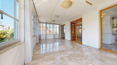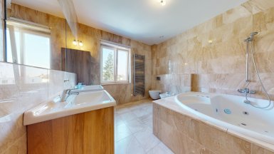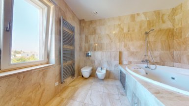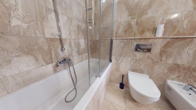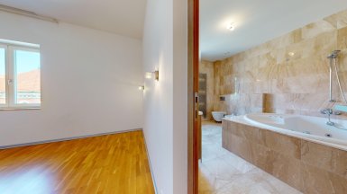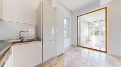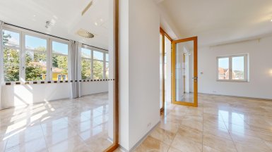 Prenájom – exkluzívny 3 izbový byt v prémiovej Rezidencii Hlboká, na Hlbokej ul. v Starom Meste, v jedinečnej lokalite pod Slavínom a Horským parkom, v pešej dostupnosti do absolútneho centra mesta. Byt je veľkoryso priestorovo riešený, výmera podlahovej plochy bytu je 138 m2 a nachádza sa 6/7posch. s výťahom. Byt dispozične pozostáva zo vstupnej chodby, priestrannej obývačky integrálne prepojenej s kuchynskou časťou a veľkou zimnou záhradou / jedálňou s unikátnymi výhľadmi na Slavín a do okolia. K dispozícii sú dve samostatné izby / spálne, každá s walk-in šatníkom a dve komfortné kúpeľne. Jedna kúpeľňa pri rodičovskej spálni je s hydromasážnou vaňou, toaletou a bidetom, druhá spálňa má klasickú vaňu, bidet a toaletu. V chodbe sa nachádza hosťovská toaleta. V unikátnom interiéri bytu, boli použité nadštandardné materiály a zariaďovacie prvky s dôrazom na čisté línie a prepracovanosť detailov (mramorové podlahy v obývačke, mramorové obklady v kúpeľniach, parketové podlahy z tropických drevín v izbách, dizajnová sanita, elegantná kuchynská linka s dostatkom úložného priestoru so zabudovanými spotrebičmi od renomovaných výrobcov. Celý byt je plne KLIMATIZOVANÝ s podlahový vykurovaním, k vybaveniu bytu patrí bezpečnostný systém a wifi. Rezidencia Hlboká spĺňa všetky kritériá luxusného bývania, zabezpečuje maximálny komfort a súkromie aj pre najnáročnejšieho klienta. K dispozícii je privátne luxusné wellness so saunou, spa centrum, 24-hodinová recepcia, súkromná bezpečnostná služba. K dispozícii je vynikajúca reštaurácia s a službami, francúzska pekáreň a kaviareň, jedinečnú atmosféru dopĺňa vínna reštaurácia Bakchus. Parkovanie je zabezpečené v podzemnej garáži rezidencie dostupnej výťahom (jedno garážové stojisko v cene prenájmu, druhý parking za príplatok 200,- eur mesačne). K inzerovanej mesačnej cene prenájmu 2500,-eur bude pripočítaná záloha na energie cca 300,- eur mesačne. ======================================= Volajte alebo píšte ešte dnes, obhliadku nehnuteľnosti pre Vás radi zabezpečíme, aj cez víkend. tel: +421 905 450 900, +421 0905 100 105 e-mail: monika.novakova@ivmoreal.sk ======================================= Text, fotografie, pôdorys a 3D virtuálna prezentácia sú autorským dielom a majetkom realitnej kancelárie IVMO-real, s.r.o. a podliehajú autorským právam.