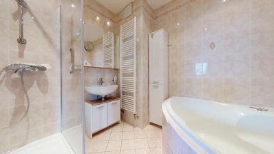 Prenájom veľkometrážneho 3i. bytu s veľkým balkónom v lukratívnej lokalite širšieho centra mesta, ul. Opavská, BA III - Nové Mesto, lokalita Kramáre, na hranici Starého Mesta, v pešej dostupnosti k Horskému parku a lesoparku Železná studnička. ***** V cene prenájmu je 1 garážové stojisko v suterénnej garáži domu. Byt sa prenajíma nezariadený (bez nábytku). ***** Výmera podlahovej plochy bytu vrátane plochy balkóna je 120m2, byt je situovaný na 7/7posch. cca 20 r. novostavby bytového domu. ***** Byt je svetlý a slnečný, je orientovaný na dve strany s prevládajúcou J-Z orientáciou a dispozične pozostáva zo vstupnej haly so zabudovaným šatníkovým systémom „rolldoor, priestrannej obývačky prepojenej s kuchyňou, jedálne (s možnoťou využitia ako obytná miestnosť), dvoch samostatných nepriechodných izieb/spální, samostatnej komory..... byt je KLIMATIZOVANÝ. Prednosťou bytu je taktiež komfortná kúpeľňa s rohovou vaňou a sprchovým kútom, toaleta je oddelená. Vstup na balkón je z obývačky aj z jedálne. Dozariadenie bytu možné po dohode. ***** Bytový dom sa nachádza vo vyhľadávanej lokalite v blízkosti Horského parku cca 10 min. peši od domu, pešia dostupnosť k lesoparku Železná studnička s veľkým detským ihriskom je cca 15 min. Najbližšie nákupné možnosti: supermarket KAUFLAND na "Patrónke", obchodná galéria v OC CUBICON v Mlynskej doline alebo Tesco Lamač, všetko max. 5 min. autom. Z domu je dobré dopravné napojenie do centra mesta (zastávka MHD na ul. Hroboňova alebo Brnianska). ***** Byt je k prenájmu ihneď voľný, je vhodný pre max. 4 dospelé osoby, alebo rodinu s deťmi. Dozariadenie je možné po dohode (za príplatok). ***** Byt je možné prenajať aj na firemné účely ako HOME OFFICE, len dlhodobý prenájom na min. 12 mesiacov a viac. K bytu patrí 1 GARÁŽOVÉ STOJISKO v cene prenájmu. Parkovanie pre ďalšie autá je možné bez obmedzení na ulici pred domom. ___________________________________________________ K inzerovanej cene prenájmu 890,- eur mesačne vrátane garážového stojiska bude pripočítaná zálohová platba za energie a služby spojené s užívaním bytu 250,- eur/1 osoba mesačne (každá ďalšia osoba + 50,- eur). Platí sa provízia pre RK. ___________________________________________________ Volajte alebo píšte ešte dnes, obhliadku pre Vás radi zabezpečíme, aj cez víkend: tel: 0905 450 900, 0905 100 105 e-mail: monika.novakova@ivmoreal.sk, ivmoreal@ivmoreal.sk ___________________________________________________ Text, fotografie a 3D virtuálna prezentácia sú autorským dielom a majetkom realitnej kancelárie IVMO & Partners, s.r.o. a podliehajú autorským právam.