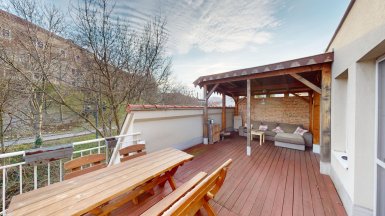 Z poverenia vlastníka ponúkame na prenájom unikátny 2izb. byt v rezidenčnej novostavbe bytového domu v absolútnom centre mesta, Zámocká ul., pod Hradom, v historickej časti Starého Mesta. ***** Výmera podlahovej plochy bytu je 52m2 + TERASA o výmere 20m2, byt je situovaný na 4/4p. s výťahom. Súčasťou prenájmu je jedno GARÁŽOVÉ STÁTIE v suterénnej garáži domu. Byt má výhľad do zelene Hradného kopca, prenajíma sa zariadený ako na foto.... a je KLIMATIZOVANÝ. ***** Byt dispozične pozostáva zo vstupnej časti, obývačky prepojenej s kuchynskou časťou, so vstupom na nadštandardnú TERASU s ohniskom a záhradným sedením, spálne so šatníkom.... K dispozícii je kúpeľňa s oknom, sprchovým kútom a toaletou. Úložný priestor je riešený formou šatníkového systému rolldoor v spálni aj vstupnej chodbe. Výhodou bytu je priestranná terasa s výhľadom do zelene, ideálne miesto na rannú kávu, poobedňajší relax a posedenie s priateľmi. ***** Byt sa nachádza v atraktívnej lokalite Starého Mesta priamo pod Bratislavským Hradom, v pešej dostupnosti k pešej zóne pod Michalskou bránou, na Hviezdoslavové námestie a Dunajskej promenáde....v okolí domu je nadštandardná občianska vybavenosť charakteristická pre centrálne zóny miest (priamo na ulici Zámocká sa nachádzajú viaceré reštaurácie, štýlové kaviarne, potraviny Tesco expres, kvetinárstvo, expozitúra banky....... ****** Byt je k prenájmu ihneď voľný, je vhodný pre max. 2 osoby. ***** K inzerovanej mesačnej cene prenájmu 1.000,-eur bude pripočítaná zálohová platba za energie vo výške 170,- eur/1 osoba. Poplatok za KTV a internet plati nájomca. Platí sa provízia pre RK. ___________________________________________________ Volajte alebo píšte ešte dnes, obhliadku bytu pre Vás radi zabezpečíme, aj cez víkend: tel: +421 905 450 900, +421 905 100 105 e-mail: monika.novakova@ivmoreal.sk -––––––––––––––––––––––––––––––––––––––––––––––––– Text, fotografie, pôdorys a 3D virtuálna prezentácia nehnuteľnosti sú autorským dielom a majetkom realitnej kancelárie IVMO & Partners, s.r.o. a podliehajú autorským právam