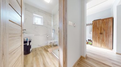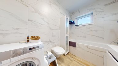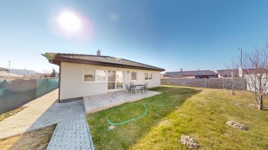 Z poverenia vlastníka ponúkame na predaj novostavbu 4 izb. rodinného domu typu „BUNGALOV s pozemkom 493m2 v obci Hrubá Borša, Jánovecká ul., okres Senec, len 35km JV smerom od centra Bratislavy v chránenej oblasti medzi Čiernou vodou a Malým Dunajom, v západnej časti Žitného ostrova. ***** Dom bol skolaudovaný v r. 2020, je samostatne stojaci, jednopodlažný, murovaný so zateplením. Konštrukčne stavba pozostáva: - 2x hydroizolácia pod nosné murivo a priečky - nosné murivo z brúsenej tehly Termobrik P 1 D 300 mm + priečky z brúsenej tehlyTermobrik 115 mm - železobetónový veniec zateplený styrodurom 50 mm - väzníkový krov - strešná krytina Bramac - sádrové interiérové omietky - vnútorná kanalizácia s napojením na verejnú kanalizáciu - podlahové elektrické vykurovanie značky Devireg Smart s wifi zónovou reguláciou. - elektrický ohrievaž Dražice OKHE SMART 125 litrový ovládanie cez wifi - okenné a dverné výplne fenestra, profil Rehau Geneo 3+ / 3sklo 44 mm - celoplošná hydroizolácia asfaltovými pásmi - zateplenie podlahy – podlahový polystyrén EPS 150S, hrúbka 140 mm - cementový poter hr. 60-70 mm - sádrokartónový strop - protihluková izolácia - vymaľovanie 2x na bielo - zateplenie polystyrénom hrúbky 200 mm, zatepľovací systém BAUMIT, Silikónová omietka 2 mm. ***** Interiér domu je prevedený v príjemnom harmonickom štýle s dôrazom na čisté línie a prepracovanosť detailov. Výmera podlahovej plochy domu je 102,40m2. Dom dispozične pozostáva: zo 4 izieb a príslušenstva, ktoré tvorí predsieň, chodba, šatník a 2x kúpeľňa, každá s toaletou (jedna kúpeľňa s vaňou, v druhej je sprchový kút.) Tri izby / spálne sú samostatné, nepriechodné, obývačka je prepojená s kuchynskou a jedálenskou časťou a má vstup na záhradnú terasu. Dom má elektrické podlahové vykurovanie. Pozemok patriaci k domu je zatrávnený, oplotený, s vysadenými ovocnými stromami a vybudovanou záhradnou terasou. ***** Na pozemku sú vybudované dve parkovacie miesta s vjazdom na diaľkové ovládanie. ***** V obci Hrubá Borša sa nachádzajú potraviny, kozmetika, barber studio, futbalový klub, golfový areál, záhradníctvo ako aj ďalšie prevádzky obchodu a služieb. V centre obce je zrevitalizovaný park a detské ihrisko. Prepravu z obce do BAA a späť zabezpečujú dve pravidelné autobusové linky. ****** Inzerovaná cena je vrátane provízie pre RK. Volajte, alebo píšte ešte dnes, obhliadku nehnuteľnosti pre Vás radi zabezpečíme, aj cez víkend. tel: +421 905 450 900, +421 905 100 105 e-mail: monika.novakova@ivmoreal.sk ***** Fotografie, pôdorysy a 3D virtuálna prezentácia sú autorským dielom a majetkom realitnej kancelárie IVMO Pullman Group, s.r.o. a podliehajú autorským právam.