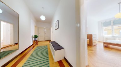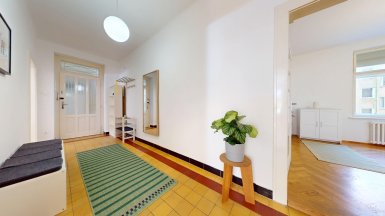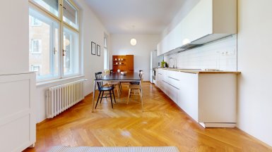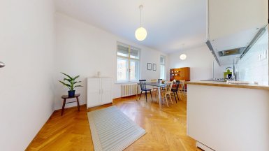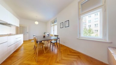 Prenájom unikátneho bytu so staromestskou atmosférou v historickej budove v absolútnom centre mesta na Vajanského nábreží, pri Dunajskom nábreží s promenádou a OC EUROVEA, hneď oproti Národnému múzeu a osobného Dunajského prístavu. ***** Výmera podlahovej plochy bytu vrátane príslušenstve je 105m2, byt je situovaný na 2. posch. s výhľadom do tichého vnútrobloku (preluka ul. Medená a Vajanského nábrežia.). ***** Byt dispozične pozostáva z 3 samostatných nepriechodných izieb a príslušenstva: vstupná hala, veľká obytná kuchyňa, komora, kúpeľňa, WC a pivnica. Byt bol komplexne zrekonštruovaný, vrátane výmeny elektroinštalácie a rozvodov. V izbách sú pôvodné kvalitne zrepasované drevené parkety, pôvodné drevené okná s originálnym kovaním, pôvodné kazetové drevené dvere. V priestrannej svetlej kuchyni s kuchynskou linkou s dostatkom úložného priestoru a veľkým jedálenským stolom je dostatok miesta pre stolovanie viacerých osôb. K dispozícii je komfortná kúpeľňa s veľkým sprchovým kútom, toaleta je oddelená. Byt je kompletne zariadený nábytkom ako je prezentované na foto. Interiér bytu bol citlivo zrekonštruovaný so zámerom zachovania pôvodných dobových historizujúcich prvkov, ktoré v byte vytvárajú nezameniteľnú atmosféru bývania staromestského charakteru. ***** Bytový dom sa nachádza na PRÉMIOVEJ ADRESE v jednej z najatraktívnejších častí Starého Mesta, v pamiatkovej zóne, hneď vedľa Dunajského nábrežia s rezidenčným projektom a luxusným nákupným centrom EUROVEA s revitalizovanou Dunajskou promenádou s rôznymi reštauráciami a kaviarňami. ***** Byt je k prenájmu ihneď voľný, je vhodný pre max. 4 osoby, alebo rodinu s deťmi. K inzerovanej mesačnej cene prenájmu 1.150,- eur bude pripočítaná vyúčtovateľná zálohová platba za energie 200,- eur. Platí sa provízia pre RK. ======================================== ___________________________________________________ Volajte alebo píšte ešte dnes, obhliadku nehnuteľnosti Vám radi zabezpečíme, aj cez víkend, tešíme sa na Vás. tel: +421 905 450 900, +421 905 100 105 e-mail: monika.novakova@ivmoreal.sk, ivmoreal@ivmoreal.sk ___________________________________________________ Fotografie, obrázky, texty a 3D virtuálna prezentácia sú autorským dielom a majetkom realitnej kancelárie IVMO & Partners, s.r.o. a podliehajú autorským právam.