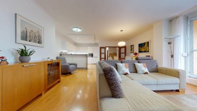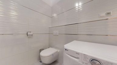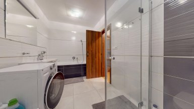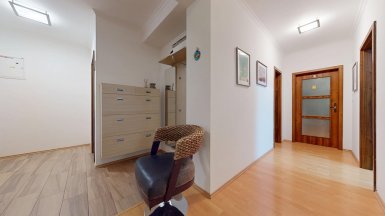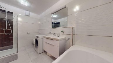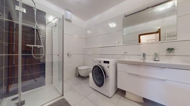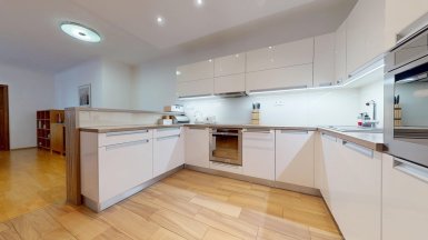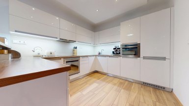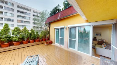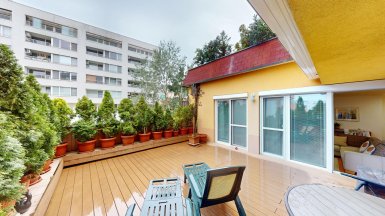 Z poverenia vlastníka ponúkame na predaj jedinečný 4 izb. byt s veľkou terasou a dvojgarážou v staršej novostavbe bytového domu na ul. Hany Meličkovej v mestskej časti Karlova Ves, lokalita Dlhé Diely, na skok do centra mesta... ***** Byt je situovaný na 2/6 posch., výmera podlahovej plochy bytu je 125,69m2 + TERASA 38m2, k bytu patrí uzamykateľná dvojgaráž s vjazdom na RC v suterénnej garáži domu o výmere 32,07m2 v cene 40.000,- eur dostupná výťahom. ***** Byt je svetlý a slnečný s prevládajúcou JZ orientáciou. Byt má praktické dispozičné riešenie a pozostáva zo vstupnej haly, priestrannej obývačky prepojenej s kuchynskou a jedálenskou časťou, troch samostatných izieb/spální, komfortnej kúpeľne s vaňou, sprchovým kútom a toaletou, komory, hosťovskej toalety s umývadlom a terasy. Vstup na terasu je z obývačky aj z rodičovskej spálne..... ***** Byt je kompletne klimatizovaný, k vybaveniu bytu patrí elegantná nadčasová kuchynská linka s dostatkom úložného priestoru so stropným podhľadom so štýlovým bodovým osvetlením, šatníkové systémy rolldoor na mieru v spálni rodičov a vo vstupnej hale, interiérové dvere z kvalitného masívu (pri vstupe do obývačky čiastočne presklenné dvojkrídlové), v izbách sú drevené parketové podlahy v ostatných častiach bytu je položená keramická dlažba. Byt má výmenník tepla (dom má vlastnú kotolňu), v kúpeľni je podlahové vykurovanie. Okná bytu sú vybavené exteriérovými aj interiérovými žalúziami, byt má videovrátnik. ***** Prednosťou bytu je veľká terasa s prívodom vody aj elektriny, po obvode z dvoch strán terasy sú zabudované kompaktné podstavce na okrasnú zeleň, podlaha terasy je z terasových kompozitných dosiek.. Vďaka nadštandardnej výmere je terasa ideálnym miestom na príjemné letné posedenia a grillparty s rodinou a priateľmi. ***** Bytový dom má originálnu architektúru, je charakteristický kaskádovými terasami s výhľadom na Rakúsko.... je vo výbornej technickej kondícii. Za domom sa nachádza veľká zelená plocha s parkovou úpravou, na prízemí domu sú situované rôzne prevádzky obchodu a služieb ...v pešej dostupnosti sú potraviny BILLA, Tesco Expres, pizzeria, kvetinárstvo, trafika.....pred bytovým domom je vyhradené parkovisko pre vlastníkov bytov v dome a návštevníkov. Lokalitu možno považovať za širšie centrum mesta s výborným dopravným napojením do absolútneho centra (cca 5-7 min. autom alebo MHD - zastávka vedľa domu), na diaľničný obchvat... Lokalita je na skok k obľúbenej Karloveskej lodenici a Devínskej hrádzi s cyklotrasou až do Vysokej pri Morave alebo Cyklomostom slobody do Rakúska. ***** Byt je ideálny na kúpu pre rodinu s deťmi ( v dosahu MŠ, ZŠ, výborné gymnázium L. Sáru a na Tilgnerovej ul. v Karlovej Vsi. ***** Cena bytu je 555.000,- eur + cena dvojgaráže 40.000,- eur (nie je podmienkou odkúpenia spolu s bytom). Inzerovaná cena zahŕňa províziu pre RK, vrátane zabezpečenia kompletného právneho servisu (vypracovanie zmlúv spojených s prevodom nehnuteľností na príslušnom katastri. ___________________________________________________ Volajte alebo píšte ešte dnes, obhliadku nehnuteľnosti Vám radi zabezpečíme, aj cez víkend, tešíme sa na Vás. tel: +421 905 450 900, +421 905 100 105, e-mail: monika.novakova@ivmoreal.sk, ivmoreal@ivmoreal.sk ___________________________________________________ Text, fotografie, pôdorys a 3D virtuálna prezentácia sú autorským dielom a majetkom spoločnosti IVMO Pullman Group, s.r.o. a podliehajú autorským právam.