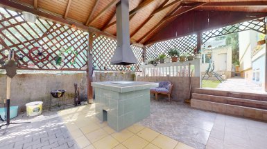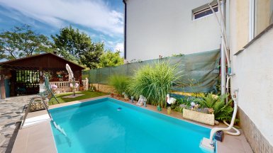 Z poverenia vlastníka ponúkame na predaj trojpodl. rodinný dom 333m2 v lukratívnej časti Devínskej Novej Vsi, vo vilovej štvrti pod lesom, ul. Pod Lipovým, s exteriérovým BAZÉNOM, samostatne stojacou murovanou garážou a pozemkom o výmere 576m2 vrátane zastavenej plochy. ***** Súčasťou rodinného domu je samostatný 2izb. byt o výmere 60m2 situovaný na prízemí domu s kompletným príslušenstvom a samostatným vchodom. Výmera podlahovej plochy domu je 273m2 + uvedený 2izb. byt s výmerou 60m2. ***** Dom bol skolaudovaný v r. 1976, je samostatne stojaci, murovaný, zateplený, pripojený na všetky IS. Dispozične dom pozostáva: PRÍZEMIE (1.NP) = 90m2: vstupná časť cez krytú verandu, chodba, obývačka, 3izby/spálne, kuchyňa, komora, kúpeľňa s vaňou a toaletou, schodisko; 2.NP (1. poschodie) = 90m2: obývačka s funkčným bio krbom, kuchyňa, jedáleň, 1 izba/spálňa, kúpeľňa so sprchovým kútom, samostatné WC s umývadlom, 2x šatník; 3.NP (2. poschodie) = 93m2: chodba, kuchyňa spojená s jedálenskou časťou, obývačka s murovaným krbom, 1x izba/spálňa, posilňovňa, kúpeľňa so sprchovým kútom, samostatné WC, šatník, 2x balkón (jeden po celej šírke domu, druhý so vstupom zo spálne). ***** Dom je veľkoryso priestorovo riešený, s možným využitím aj ako dvoj/trojgeneračný dom. Na každom podlaží sa nachádza kuchyňa, kúpeľňa aj toaleta. K domu patrí menšia upravená záhrada s bazénom a zastrešeným altánkom so záhradným murovaným grilom a s posedením. Zo záhrady je priamy vstup uzamykateľnou bránkou do lesoparku za domom. ***** V dosahu výborná občianska vybavenosť BORY Mall, shopping centrá Hornbach, OBI, Mercury Market, nová nemocnica BORY, dobrá dostupnosť na diaľničný obchvat , blízkosť Moravskej hrádze s cyklotrasami.... Dom je vhodný na kúpu s možnosťou prebudovania na reprezentačné (aj viacgeneračné) rodinné alebo firemné sídlo. Je vhodný na kúpu aj na investičné účely s variabilnými možnosťami komerčného využitia (napr. medicínske centrum, súkromná klinika, bývanie s podnikaním ako HOME OFFICE. ***** Dom je bez tiarch s možnosťou prefinancovania kúpy aj na HÚ. V prípade záujmu je Vám k dispozícii s vybavením hypotéky náš firemný hypošpecialista. V inzerovanej cene je zahrnutá provízia pre RK, vrátane zebezpečenia právneho servisu spojeného s prevodom nehnuteľnosti na príslušnom katastri. ***** Volajte, alebo píšte ešte dnes, obhliadku nehnuteľnosti pre Vás radi zabezpečíme, aj cez víkend, tešíme sa na Vás. tel: +421 905 450 900, +421 905 100 105 e-mail: monika.novakova@ivmoreal.sk ***** Fotografie, pôdorysy a 3D virtuálna prezentácia sú autorským dielom a majetkom realitnej kancelárie IVMO Pullman Group, s.r.o. a podliehajú autorským právam.