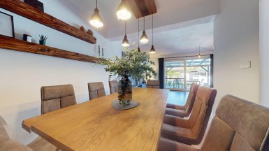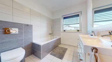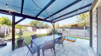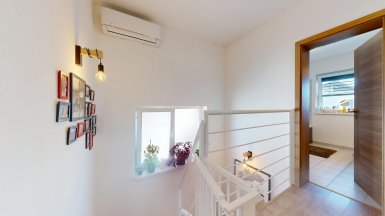 Predaj komfortného 4izb. rodinného domu 120m2, ktorý je súčasťou dvojdomu ( dve samostatné bytové jednotky) v Slovenskom Grobe, v jedinečnej lokalite "Malý Raj", ul. Stromová, druhá ulička od jazera, v blízkosti unikátnej prírodnej rezervácie Šúrsky les" len 13km od Bratislavy a 5km od Pezinka. ***** Rodinný dom bol kolaudovaný v r. 2017, je murovaný z dutej tehly, zateplený, napojený na všetky IS, dvojpodlažný (prízemie a poschodie), výmera podlahovej plochy je 116,50m2 + balkón 3,50m + terasa 20m2. Zastavaná plocha je 78m2 + záhrada k bytu 236m2 (spolu pozemok 314m2), dve vonkajšie parkovacie miesta na pozemku. ****** DISPOZIČNÉ RIEŠENIE: prízemie: zádverie + schodisko, kuchyňa, jedáleň, kúpeľňa s WC, komora, obývacia izba so vstupom na záhadnú terasu. poschodie: chodba, 3 x izba (z toho jedna s balkónom), kúpeľňa s WC a technická miestnosť. ****** Vykurovanie a ohrev vody zabezpečený kondenzačným kotlom zn. Protherm (v októbri prejde kompletným servisom), podlahové kúrenie na prízemí a radiátory na poschodí v každej miestnosti. Spodná kúpeľňa bola kompletne prerobená v r. 2022. Na hornom poschodí je vnútorná klimatizačná jednotka s primárnym chladením celého horného podlažia (3,5kw značka Vivax model R design možnosť inteligentného ovládania cez wifi), termostat n akaždom podlaží s možnosťou ovládania cez wifi. ***** Krytá terasa cca 20 m2 so zatienením screenovou roletou, výsuv cca 4m pre lepší komfort cez horúce dni. Bezpečnostná kamera snímajúca parkovací priestor. Elektrický vrátnik. Exteriérové žalúzie na 5 oknách celé horné podlažie okrem balkónových dverí a dole na kuchynskom okne. ***** Kopaná studňa cca 5,5m hlboká, priemer 1m s dostatkom vody komfortné zalievanie záhrady. Pozemok je oplotený betónovým plotom. Predná časť pozemku od cesty je oddelená murovaným plotom z tvárnic a bránou na diaľkové ovládanie. Záhrada je starostlivo udržiavaná s okrasnou výsadbou. ***** Dom je postavený v novovybudovanej vilovej štvrti v zástavbe nových rodinných domov, lokalita "Malý raj" s pravidelnou medzimestskou autobusovou linkou "z" a "do" BA. Obec Slovenský Grob disponuje rozsiahlou občianskou vybavenosťou vrátane materskej škôlky, základnej školy, banky a rôznych prevádzok obchodu a služieb, jazero s oddychovou zónou, outdoorový fitpark, kaviareň, cukráreň, pizzeria, kaderníctvo, Packeta, zubná hygiena atď. Rodinný dom sa nachádza hneď v druhej uličke od JAZERA s oddychovou zónou, s BBQ posedením a detským ihriskom. ***** Obec Slovenský Grob je v celom Malokarpatskom regióne preslávená organizovaním tradičných husacích hodov, nachádza sa v blízkosti prírodnej rezervácie Šúrsky les s viacerými náučnými chodníkmi a obľúbenými cyklotrasami, ideálne miesto na rekreačné a športove aktivity pre rodiny s deťmi. Z lokality je výborné napojenie na diaľničný obchvat "D1". ***** Inzerovaná cena je vrátane provízie pre RK a zahŕňa zabezpečenie kompletného právneho servisu spojeného s prevodom nehnuteľností na príslušnom katastri. ––––––––––––––––––––––––––––––––––––––––––––––––––– Volajte alebo píšte ešte dnes, obhliadku nehnuteľnosti Vám radi zabezpečíme, aj cez víkend. tel: +421 905 450 900, +421 905 100 105 e-mail: monika.novakova@ivmoreal.sk ––––––––––––––––––––––––––––––––––––––––––––––––––– Text, fotografie a 3D virtuálna prezentácia sú autorským dielom a majetkom realitnej kancelárie IVMO Pullman Group, s.r.o. a podliehajú autorským právam.