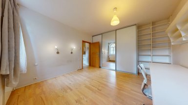Z poverenia vlastníka ponúkame na prenájom jedinečný 3izb. byt 75m2 so staromestskou atmosférou na ul. Godrova, v unikátnej, pamiatkovo chránenej historickej budove z r. 1930 po celkovej revitalizácii fasády a vnútorných spoločných priestorov. Budova sa nachádza v prestížnej lokalite Starého Mesta, v diplomatickej štvrti Palisády, neďaleko Prezidentského paláca a záhrady, v pešej dostupnosti k Michalskému korzu a k Dunajskému nábrežiu. ***** Byt bol kompletne zrekonštruovaný, vrátane čiastočnej úpravy pôvodného dispozičného riešenia. V byte bola kompletne vymenená elektroinštalácia, vodovodné a teplonosné rozvody, odpadové potrubia, osadené nové obklady, sanita, kuchynská linka....... Štýlovú atmosféru bytu vytvárajú kvalitne zrepasované pôvodné kazetové poloblúkové drevené okná s originálnym kovaním. Okná bytu sú orientované do tichého dvora s okrasnou výsadbou JZ smerom so slnkom od obeda do večera. ***** Byt dispozične pozostáva z dennej zóny, ktorú predstavuje priestranná obývačka s kuchynskou a jedálenskou časťou. K dispozícii sú dve priestranné izby/spálne, každá so šatníkom, komfortná kúpeľňa s oknom a centrálne umiestnenou zapustenou vaňou so sprchovým „vodopádom a bidetovej toalety. K dispozícii je taktiež hosťovská toaleta s umývadlom.. Byt má vlastné vykurovanie zabezpečené kondenzačným plynovým kotlom zn. Buderus s novými radiátormi, v kúpeľni je podlahové vykurovanie. ***** K bytu patria 2 odkladacie priestory, pivnica cca 5m2 a exteriérový, samostatne stojaci uzamykateľný sklad/kumbál na pozemku na uskladnenie mimosezónnych vecí, bicyklov, športových potrieb ap. ***** Byt sa nachádza na PRÉMIOVEJ ADRESE v tichej časti Palisád. Godrova ul. je tichá, jednosmerná ulička s impozantnými historickými vilami v pokračovaní na Galandovu ul. Lokalita má vzhľadom na stred mesta strategickú polohu, je bezpečná, nachádzajú sa tu rezidencie a sídla viacerých zahraničných ambasád, veľvyslanectiev a zahraničných obchodných zastupiteľstiev....lokalita je charakteristická množstvom zelene. ***** Byt je k prenájmu ihneď voľný, aktuálne zariadenie a vybavenie bytu zodpovedá priloženej fotoprezentácii.....byt je vhodný pre max. 3 dospelé osoby alebo rodinu s menšími deťmi (2+2). Malý psík alebo mačka so zvládnutými spoločenskými a hygienickými návykmi nie je prekážkou. Fajčiari, prosím, nie. MOŽNOSŤ VYBAVENIA REZIDENČNEJ PARKOVACEJ KARTY. ***** V okolí domu je nadštandardná občianska vybavenosť charakteristická pre centrálne zóny miest. Zariadenie podľa foto je v cene predaja. ***** K inzerovanej mesačnej cene prenájmu 800,- eur bude pripočítaná vyúčtovateľná zálohová platba za služby a energie vo výške 200,- eur. Platí sa provízia pre RK. ______________________________________________________________________________________________________________ Volajte, alebo píšte ešte dnes, obhliadku nehnuteľnosti pre Vás zabezpečíme aj cez víkend. Tešíme sa na Vás. tel: +421 905 450 900, +421 905 100 105 e-mail: monika.novakova@ivmoreal.sk, ivmoreal@ivmoreal.sk ***** Text, fotografie a 3D virtuálna prezentácia sú majetkom spoločnosti IVMO Pullman Group, s.r.o.
