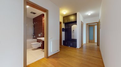 Prenájom luxusného 4 izb. bytu na Strážnej ul. v rezidenčnom bytovom projekte PARKVILLE v atraktívnej lokalite v tesnej blízkosti lesoparku Koliba, v mestskej časti BA III - Nové Mesto, kat. územie Vinohrady. ==== Byt je situovaný na 3/4 posch. s výťahom s unikátnymi výhľadmi na mesto, k bytu patrí jedno garážové stojisko v suterénnej garáži domu v cene prenájmu (druhé garážové stojisko je za príplatok 60,- eur mesačne). =======================================0 Výmera podlahovej plochy bytu je 100m2 + plocha terasy 15m2 Terasa má dva vstupy, z obývačky aj z jedálenskej časti. ==== Byt dispozične pozostáva zo vstupnej časti, haly, 3 samostatných izieb/spální, obývačky integrálne prepojenej s jedálenskou časťou, kuchyne s elegantnou kuchynskou linkou, ktorá je čiastočne oddelená posuvnými dverami. K dispozícii je komfortná kúpeľňa s vaňou, sprchovým kútom a WC, plus hosťovské WC s umývadlom situované v chodbe. V byte sa nachádza samostatný šatník a komora, dve spálne sú vybavené vstavaným šatníkovým systémom rolldoor. ==== Bonusom bytu je: - priestranná TERASA 15m2 po celej dĺžke obývačky a jedálne s unikátnym výhľadom na panorámu mesta; - dve garážové stojiská v suterénnej garázi domu (1. GP v cene prenájmu, 2.GP za príplatok 60,- € mesačne) ==== Bytový dom sa nachádza v tesnej blízkosti lesoparku Koliba s možnosťami športových a rekreačných aktivít počas celého roka. ==== Byt je k prenájmu ihneď voľný, je vhodný aj pre náročného klienta. Vďaka blízkosti lesoparku je vhodný aj pre rodiny s deťmi. ==== K inzerovanej mesačnej cene prenájmu bytu (vrátane 1 garážového státia) 1550,- eur bude pripočítaná zálohová platba za energie a služby vo výške 450,-eur /4 osoby. Druhé garážové státie je za príplatok 60,- eur mesačne. Platí sa depozit a provízia pre RK. ==== Volajte alebo píšte ešte dnes, obhliadku radi zabezpečíme, aj cez víkend tel: 0905 450 900, 0905 100 105 e-mail: monika.novakova@ivmoreal.sk ==== © Text, fotografie a 3D virtuálna prezentácia sú autorským dielom a majetkom realitnej kancelárie IVMO-real, s.r.o.