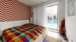 Prenájom nadštandardného veľkometrážneho 3izb. bytu s vlastným BAZÉNOM, záhradou, plus 2x PARKING v novostavbe bytového domu na Mozartovej ul., v exkluzívnej lokalite v blízkosti Horského parku, BA I - Staré Mesto. Byt je situovaný na prízemí bytového domu s "kaskádovými" terasami, každé podlažie je "ustúpené", čo zabezpečuje pre vlastníkov jednotlivých bytov maximálne súkromie. Výmera podlahovej plochy bytu vrátane príslušenstva je 150m2, plus záhrada. K bytu patria dve vyhradené parkovacie stojiská na parkovisku priamo pred domom v cene prenájmu. Byt je orientovaný na dve strany s prevažujúcou západnou orientáciou, je svetlý a slnečný aj vďaka zasklenným plochám v dennej časti bytu. Byt dispozične pozostáva zo vstupnej chodby, haly kuchyne s príjemným výhľadom do záhrady patriacej k bytu, obývačky integrálne prepojenej s presklenenou terasou s výsuvnou markízou na el. pohon, komfortnej jedálne, spálne, pracovne, komory, kúpeľne s praktickým sprchovým kútom, oddelenej toalety a krytej bezénovej časti so vstupom zo spálne aj z terasy. Letná terasa so záhradným nábytkom a záhrada s okrasnou výsadbou sú v sezónnom období ideálnym miestom na relax a príjemné posedenie s rodinou a priateľmi. Interiér bytu je prevedený v harmonickom štýle s dôrazom na prepracovanosť detailov, praktické využitie priestoru a maximálny komfort bývania. Úložný priestor v byte je riešený formou šatníkových systémov rolldoor. Byt má vlastné vykurovanie, vrátane ohrevu bazéna, BAZÉN je s PROTIPRÚDOM. Dom je situovaný v lukratívnej, rezidenčnej lokalite, v ktorej majú sídla mnohé zahraničné obchodné zastupiteľstvá, ambasády a veľvyslanectvá, lokalita je tichá, bezpečná, s množstvom zelene (Horský park). Z lokality je výborný prístup do centra a na diaľničný obchvat. ___________________________________________________ Byt je k prenájmu ihneď voľný, je vhodný aj pre náročného klienta. K inzerovanej cene prenájmu 1100,- eur bude pripočítaná vyúčtovateľná zálohová platba za energie 300,- eur mesačne + poplatok za 2x PARKING 150,- eur. Platí sa provízia pre RK. ___________________________________________________ Volajte alebo píšte ešte dnes, obhliadku nehnuteľnosti Vám radi zabezpečíme, aj cez víkend: tel: +421 905 450 900, +421 905 100 105 e-mail: monika.novakova@ivmoreal.sk, ivmoreal@ivmoreal.sk ___________________________________________________ ©Text, fotografie, pôdorys a 3D virtuálna prezentácia sú autorským dielom a majetkom spoločnosti IVMO-real, s.r.o. a podliehajú autorským právam.