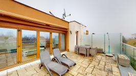 Prenájom exkluzívneho plne zariadeného trojpodlažného samostatne stojaceho 5 izb. rodinného domu, /vila/ s komfortným príslušenstvom, v tichom prostredí Vinohradov, v mestskej časti BA - Nové Mesto, Pezinská ul. v súkromnom, uzavretom areáli - condomíniu 8 rodinných domov projekt "Pezinská/Jurská". Výmera podlahovej plochy domu je 210m2. K domu patrí menšia záhrada so záhradnou terasou a automat. závlahou. ___________________________________________________ Dom má tri nadzemné podlažia (z toho vrchné s veľkou terasou 30m2), v suteréne domu sa nachádza hosťovská izba/spálňa, kúpeľňa s toaletou, práčovňa a technické zázemie/kotolňa. V interiéri boli použité nadštandardné materiály s dôrazom na prepracovanosť detailov. ___________________________________________________ Prístup do areálu je zo súkromnej príjazdovej komunikácie s vjazdovou bránou a bránkou pre peších na diaľkové ovládanie. Bonusom domu je priestranná južná terasa o výmere 30m2 s unikátnym panoramatickým výhľadom na vinice a južné svahy Malých Karpát. ___________________________________________________ Dom pozostáva z 5izb. vrátane priestrannej obývačky integrálne prepojenou s kuchynskou a jedálenskou časťou situovanou na prízemí domu. ___________________________________________________ Na každom podlaží domu je komfortná kúpeľňa a wc (spolu tri), v suteréne je práčovňa s vhadzovým potrubím z každej kúpeľne na zhoz bielizne. K domu patrí menšia záhrada s výsadbou a s automatickou závlahou vrátane druhej exteriérovej záhradnej terasy s posedením. V rámci stavebno-technických parametrov stavby je možné dom charakterizovať ako objekt s kvalitnou nízkoenergetickou konštrukciou vrátane nízkych prevádzkových nákladov na réžiu domu. V dome sú nainštalované veľkorozmerné okná s trojsklami, kvalitné interiérové dvere, k vybaveniu domu patrí elegantná nadčasová kuchynská linka so zabudovanými spotrebičmi a s dostatkom úložného priestoru, videovrátnik s diaľkovým ovládaním otvárania všetkých vstupných, resp. vjazdových brán. V dome je v každej obytnej miestnosti zavedený najrýchlejší internet cez optický kábel ORANGE na 10 GIGA PC sieť. Vila sa nachádza v bezprostrednej blízkosti malokarpatských viníc, avšak s výbornou dostupnosťou do centra mesta (cca 10-15 min. autom v rannej špičke), resp. na diaľničné obchvaty. Dom je vhodný k prenájmu pre náročného klienta, k prenájmu je ihneď voľný, je ideálny pre rodinu s deťmi (nie pre úplne malé deti, kvôli schodom). Menší psík so zvládnutými hygienickými a sociálnymi návykmi nie je prekážkou. K inzerovanej cene prenájmu 2.000,- eur mesačne bude pripočítaná vyúčtovateľná zálohová platba za spotrebu energií 300,- eur mesačne + poplatok 50,- eur za údržbu spoločného areálu. platí sa provízia pre rk. ___________________________________________________ Volajte alebo píšte ešte dnes, obhliadku nehnuteľnosti Vám radi zabezpečíme, aj cez víkend: tel: +421 905 450 900, +421 905 100 105 e-mail: monika.novakova@ivmoreal.sk ___________________________________________________ © COPYRIGHT IVMO-real, s.r.o. – Fotografie, obrázky, texty a 3D virtuálna prezentácia sú autorským dielom a majetkom realitnej kancelárie IVMO-real, s.r.o.