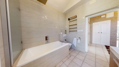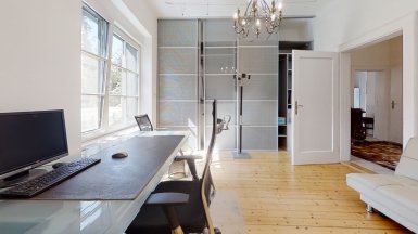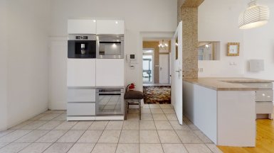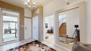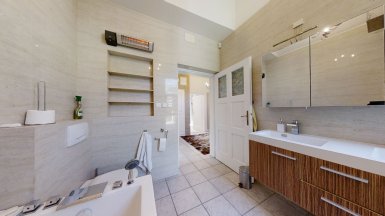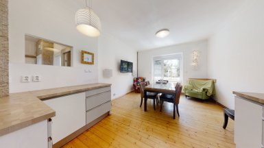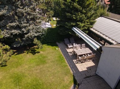 Prenájom exkluzívneho, plne zariadeného dvojpodlažného samostatne stojaceho 7 izb. rodinného domu, /vila/ s komfortným príslušenstvom, v tichom prostredí Vinohradov v mestskej časti BA III - Nové Mesto, Pezinská ul. ***** Dom pozostáva zo 7 izieb a príslušenstva, výmera podlahovej plochy domu je 350m2 + TERASA 20m2, dom sa nachádza v bezprostrednej blízkosti malokarpatských viníc s výhľadom na južné svahy Malých Karpát. K domu patrí záhrada so záhradnou terasou a automat. závlahou, plus 2 vyhradené PARKOVACIE STÁTIA pod prístreškom na pozemku + parking na ulici pred domom. K vybaveniu domu patrí ochladzovací bazén, sauna (suchá aj parná), zimná záhrada, práčovňa, miestnosť s biliardovým stolom, hlavná spálňa s vlastnou kúpeľňou, hobby miestnosť..... videovrátnik s diaľkovým ovládaním otvárania všetkých vstupných, resp. vjazdových brán, v každej obytnej miestnosti je zavedený najrýchlejší internet cez optický kábel ORANGE na 10 GIGA PC sieť. V interiéri boli použité nadštandardné materiály s dôrazom na prepracovanosť detailov, dizajnový nábytok, značková sanita.... V dome sú tri komfortné kúpeľne a 4 wc, v suteréne je práčovňa a dve sauny s ochladzovacím bazénom. Dom má kvalitnú nízkoenergetickú konštrukciu a s tým spojené nízke prevádzkové náklady na réžiu domu. V dome sú nainštalované veľkorozmerné okná s trojsklami, kvalitné interiérové dvere s obložkovými zárubňami, k vybaveniu domu patrí elegantná kuchynská linka so zabudovanými spotrebičmi s dostatkom úložného priestoru. ***** Vila sa nachádza v bezprostrednej blízkosti malokarpatských viníc, avšak s výbornou dostupnosťou do centra mesta (cca 15-20 min. autom v rannej špičke), resp. na diaľničné obchvaty. Dom je vhodný k prenájmu pre náročného klienta. K prenájmu je dom voľný od 01.03.2025, je ideálny aj pre zahraničnú rodinu s deťmi. Psík so zvládnutými hygienickými a sociálnymi návykmi nie je prekážkou. ___________________________________________________ K inzerovanej cene prenájmu 2.600,- eur mesačne bude pripočítaná vyúčtovateľná zálohová platba za spotrebu energií 450,- eur + záhradník 50 / mesačne. Platí sa provízia pre RK. ___________________________________________________ Volajte alebo píšte ešte dnes, obhliadku nehnuteľnosti Vám radi zabezpečíme, aj cez víkend: tel: +421 905 450 900, +421 905 100 105 e-mail: monika.novakova@ivmoreal.sk, ivmoreal@ivmoreal.sk ___________________________________________________ COPYRIGHT IVMO-real, s.r.o. – Fotografie, obrázky, texty a 3D virtuálna prezentácia sú autorským dielom a majetkom realitnej kancelárie IVMO & Partners, s.r.o.