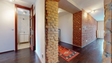 Prenájom nadštandardného 2,5 izb. bytu s nezameniteľnou atmosférou a s unikátnym výhľadom na kostol Sv. Alžbety na Hollého ul. v absolútnom centrum Starého Mesta. Byt je situovaný na 5/5p. tehlového bytového domu s VÝŤAHOM po celkovej revitalizácii fasády a vnútorných priestorov, bytový dom je zateplený, s novozrekonštruovanými vnútornými priestormi, má nový vchod, schránky a výťah..... Výmera podlahovej plochy bytu je 76m2 vrátane loggie 8m2 s nádherným výhľadom do okolia a malého balkóna, tretia izba je menšia cca 8,2m2, viď priložený pôdorys. Byt bol zrekonštruovaný, vrátane výmeny elektroinštalácie a rozvodov.... K dispozícii je novšia kuchynská linka so zabudovanými spotrebičmi vrátane umývačky riadu a pračky, minimalistická kúpeľňa so sprchovým kútom a toaleta sú oddelené. V byte je vstavaný šatník v chodbe a v jednej zo spální, atmosféru bytu dotvárajú tehlové obklady. Byt je plne KLIMATIZOVANÝ. Bytový dom sa nachádza v absolútnom centre mesta v blízkosti Kamenného nám, oproti kostolu Sv. Alžbety, v pešej dostupnosti k Dunajskému nábrežiu a OC EUROVEA. V okolí domu je vynikajúca občianska vybavenosť charakteristická pre centrálne zóny miest. V blízkosti domu je zastávka MHD (električka na Špitálskej ul.) Byt je k prenájmu ihneď voľný, je vhodný na bývanie pre max. dve osoby alebo pár s jedným dieťaťom. Dozariadenie bytu nábytkom je na náklady nájomcu. Možnosť prenájmu bytu aj ako HOME OFFICE pre menšiu firmu s podnikateľskými aktivitami administratívneho charakteru (projekčné štúdio, reklamná agentúra, advokátska kancelária, brookerské služby ap.) Byt nemá zabezpečené vlastné parkovacie miesto, parkovanie je možné na verejnom platenom parkovisku na Kamennom nám. alebo na Špitálskej ul. (aj dlhodobý prenájom). K inzerovanej cene prenájmu 690,- eur bude pripočítaná vyúčtovateľná zálohová platba za energie 160,- eur podľa výmeru od správcu bytového domu. Poplatok za spotrebu elektriny si hradí nájomca prihlásením odberu na svoje meno. Platí sa provízia pre RK. ___________________________________________________ Volajte alebo píšte ešte dnes, obhliadku nehnuteľnosti Vám radi zabezpečíme, aj cez víkend: tel: +421 905 450 900, +421 905 100 105 e-mail: monika.novakova@ivmoreal.sk, ivmoreal@ivmoreal.sk ___________________________________________________ ©Text, fotografie, pôdorys a 3D virtuálna prezentácia sú autorským dielom a majetkom spoločnosti IVMO-real, s.r.o. a podliehajú autorským právam.