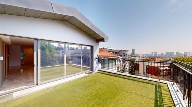 Prenájom – exkluzívny 5 izbový byt s úžasnou terasou v prémiovej Rezidencii Hlboká, na Hlbokej ul. v Starom Meste, v jedinečnej lokalite pod Slavínom a Horským parkom, v pešej dostupnosti do absolútneho centra mesta. Byt je veľkoryso priestorovo riešený, výmera podlahovej plochy bytu je 160 m2 + TERASA 30m2, byt sa nachádza na 7/7posch. s výťahom. Byt dispozične pozostáva zo vstupnej chodby, priestrannej obývačky integrálne prepojenej s kuchynskou časťou a veľkou TERASOU s unikátnymi výhľadmi na Slavín a do okolia. K dispozícii sú tri samostatné izby / spálne, walk-in šatníky, hosťovská izba a dve komfortné kúpeľne. Obidve kúpeľne disponujú vaňou, sprchovým kútom, bidetom a toaletou, v chodbe sa nachádza hosťovská toaleta s umývadlom. V unikátnom interiéri bytu, boli použité nadštandardné materiály a zariaďovacie prvky s dôrazom na čisté línie a prepracovanosť detailov (mramorové podlahy v obývačke, mramorové obklady v kúpeľniach, parketové podlahy z tropických drevín v izbách, dizajnová sanita, elegantná kuchynská linka s "kuchynským ostrovom" s dostatkom úložného priestoru so zabudovanými spotrebičmi od renomovaných výrobcov. Celý byt je plne KLIMATIZOVANÝ s podlahový vykurovaním, k vybaveniu bytu patrí bezpečnostný systém a wifi. Rezidencia Hlboká spĺňa všetky kritériá luxusného bývania, zabezpečuje maximálny komfort a súkromie aj pre najnáročnejšieho klienta. K dispozícii je privátne luxusné wellness so saunou, spa centrum, 24-hodinová recepcia, súkromná bezpečnostná služba. K dispozícii je vynikajúca reštaurácia s a službami, francúzska pekáreň a kaviareň, jedinečnú atmosféru dopĺňa vínna reštaurácia Bakchus. Rezidencia Hlboká 7 sa nachádza v elegantnej, historickej, pamiatkovo chránenej budove a je situovaná v jednej z najatraktívnejších častí Starého Mesta, v rezidenčnej lokalite v pešej dostupnosti k Horskému parku, k Prezidentskému palácu a k pešej zóne pod Michalskou bránou (všetko vo vzdialenosti cca 10 min. peši). Parkovanie je zabezpečené v podzemnej garáži rezidencie dostupnej výťahom. K inzerovanej mesačnej cene prenájmu 2990,-eur bude pripočítaná záloha na energie cca 300,- eur mesačne. ======================================= Volajte alebo píšte ešte dnes, obhliadku nehnuteľnosti pre Vás radi zabezpečíme, aj cez víkend. tel: +421 905 450 900, +421 0905 100 105 e-mail: monika.novakova@ivmoreal.sk ======================================= Text, fotografie, pôdorys a 3D virtuálna prezentácia sú autorským dielom a majetkom realitnej kancelárie IVMO-real, s.r.o. a podliehajú autorským právam.