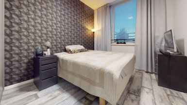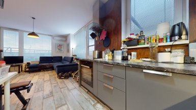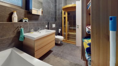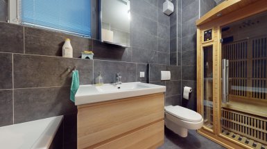Z poverenia vlastníka ponúkame na predaj nadštandardný 2izb. byt v novostavbe rezidenčného bytového projektu "Galéria Lužná" na Orechovej ul. v Dunajskej Lužnej, len 15km juhovýchodným smerom od Bratislavy. *************************************************** Byt je situovaný na 2/2 posch. tehlového bytového domu s VÝŤAHOM, kol. v r. 2018, v tichej lokalite v blízkosti centra obce. Dom má vlastnú kotolňu a areál s parkovou úpravou. *************************************************** Výmera podlahovej plochy bytu je 49,07m2 + TERASA 25m2 + PIVNIČNÁ KOBKA 1,80m2, ktorá je v cene predaja. **************************************************** K bytu patrí: 1x exteriérové parkovacie miesto (12.000,- eur) na vyhradenom parkovisku pred domom a 1x GARÁŽOVÉ STOJISKO (15.000,- eur) v suterénnej garáži domu. (Odkúpenie parkovacích miest nie je podmienkou predaja bytu). **************************************************** Dispozične byt pozostáva zo vstupnej chodby, obývačky prepojenej s kuchynskou časťou so vstupom na priestrannú TERASU, samostatnej spálne s elegantnou tapetou a šatníkom „rolldoor“, komfortnej kúpeľne s oknom, vaňou, toaletou a infra SAUNOU. Interiér bytu je prevedený v harmonickom nadčasovom štýle s dôrazom na čisté línie a prepracovanosť detailov. Príjemnú atmosféru, pocit priestoru a svetla v interiéri dotvárajú veľkoformátové okná so žalúziami do výšky stropu, svetlé farebné odtiene podláh s imitáciou „drevenej palubovky“ a obývačková zostava na mieru s množstvom úložného priestoru v svetlosivej farbe. K dispozícii je elegantná kuchynská linka s atypickou rastrovanou metalickou zástenou patinovanou „hrdzou“ so vstavanými spotrebičmi vyššieho radu, vrátane umývačky riadu. **************************************************** V celom byte je podlahové el. vykurovanie, byt má nainštalovanú predprípravu na strešnú fotovoltaiku, k vybaveniu bytu patrí KLIMATIZÁCIA v obidvoch izbách. Mesačné náklady na prevádzku bytu podľa výmeru od správcu domu sú 120,- eur/1os. + elektrina a odber telekomunikačných služieb. **************************************************** Jedinečnú atmosféru bytu dotvára priestranná TERASA patriaca k bytu s výmerou 25m2 s prevládajúcou JZ orientáciou so zeleňou, komfortným záhradným nábytkom, el. výsuvnou markízou, s výhľadom do zelene. Terasa je konštrukčne a staticky prispôsobená na umiestnenie aj väčšej vírivky JACUZZI pre viac osôb s kompletným príslušenstvom. **************************************************** Obec Dunajská Lužná je situovaná hneď za obcou Rovinka a nachádza sa v nej kompletná občianska vybavenosť, ZŠ, MŠ, zdravotné stredisko, pošta, kostol, potraviny COOP Jednota, komplexné nákupné možnosti na trase z alebo do BAA zabezpečuje Kaufland a BILLA. Významnú časovú úsporu v rámci dochádzania z a do Bratislavy predstavuje rýchlostná cesta R7 a diaľničný obchvat "D4". Vo vzdialenosti 3,5 km je vodná nádrž Čunovo, ktorá je súčasťou vodného diela Gabčíkovo. Najbližšie vodné plochy sú jazerá Nové Košariská, Malá voda a Piesková jama, ktoré sa využívajú aj na lov rýb a rekreáciu. **************************************************** Byt je bez tiarch, kúpou voľný, s možnosťou kúpy aj na HÚ... v cene predaja je aj kompletné zariadenie a vybavenie, vrátane veľkoplošnej TV, samostatne stojacej chladničky s mrazničkou, pračky, svietidiel, hnuteľného zariadenia/nábytku. **************************************************** Vzhľadom na nadštandardné parametre nehnuteľnosti je byt vhodný na kúpu aj ako vynikajúca INVESTIČNÁ PRÍLEŽITOSŤ s výnosmi z budúcich prenájmov. ___________________________________________________ Volajte alebo píšte ešte dnes, obhliadku nehnuteľnosti Vám radi zabezpečíme, aj cez víkend: tel: 0905 450 900, 0905 100 105, e-mail: monika.novakova@ivmoreal.sk, ivmoreal@ivmoreal.sk Text, ___________________________________________________ Text, fotografie a 3D virtuálna prezentácia sú autorským dielom a majetkom spoločnosti IVMO-real, s.r.o. a podliehajú autorským právam.