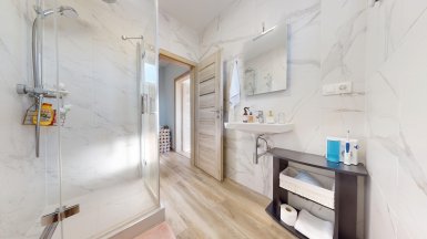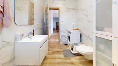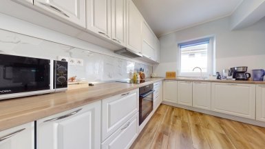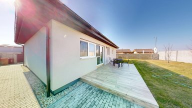 Z poverenia vlastníka ponúkame na predaj novostavbu 4 izb. rodinného domu typu „BUNGALOV s pozemkom 493m2 v obci Hrubá Borša, Jánovecká ul., okres Senec, len 35km JV smerom od centra Bratislavy v chránenej oblasti medzi Čiernou vodou a Malým Dunajom, v západnej časti Žitného ostrova. ***** Dom bol skolaudovaný v r. 2020, je samostatne stojaci, jednopodlažný, murovaný so zateplením. Konštrukčne stavba pozostáva: - 2x hydroizolácia pod nosné murivo a priečky - nosné murivo z brúsenej tehly Termobrik P 1 D 300 mm + priečky z brúsenej tehlyTermobrik 115 mm - železobetónový veniec zateplený styrodurom 50 mm - väzníkový krov - strešná krytina Bramac - sádrové interiérové omietky - vnútorná kanalizácia s napojením na verejnú kanalizáciu - podlahové elektrické vykurovanie značky Devireg Smart s wifi zónovou reguláciou. - elektrický ohrievaž Dražice OKHE SMART 125 litrový ovládanie cez wifi - okenné a dverné výplne fenestra, profil Rehau Geneo 3+ / 3sklo 44 mm - celoplošná hydroizolácia asfaltovými pásmi - zateplenie podlahy – podlahový polystyrén EPS 150S, hrúbka 140 mm - cementový poter hr. 60-70 mm - sádrokartónový strop - protihluková izolácia - vymaľovanie 2x na bielo - zateplenie polystyrénom hrúbky 200 mm, zatepľovací systém BAUMIT, Silikónová omietka 2 mm. ***** Interiér domu je prevedený v príjemnom harmonickom štýle s dôrazom na čisté línie a prepracovanosť detailov. Výmera podlahovej plochy domu je 102,40m2. Dom dispozične pozostáva: zo 4 izieb a príslušenstva, ktoré tvorí predsieň, chodba, šatník a 2x kúpeľňa, každá s toaletou (jedna kúpeľňa s vaňou, v druhej je sprchový kút.) Tri izby / spálne sú samostatné, nepriechodné, obývačka je prepojená s kuchynskou a jedálenskou časťou a má vstup na záhradnú terasu. Dom má elektrické podlahové vykurovanie. Pozemok patriaci k domu je zatrávnený, oplotený, s vysadenými ovocnými stromami a vybudovanou záhradnou terasou. ***** Na pozemku sú vybudované dve parkovacie miesta s vjazdom na diaľkové ovládanie. ***** V obci Hrubá Borša sa nachádzajú potraviny, kozmetika, barber studio, futbalový klub, golfový areál, záhradníctvo ako aj ďalšie prevádzky obchodu a služieb. V centre obce je zrevitalizovaný park a detské ihrisko. Prepravu z obce do BAA a späť zabezpečujú dve pravidelné autobusové linky. ****** Inzerovaná cena je vrátane provízie pre RK. Volajte, alebo píšte ešte dnes, obhliadku nehnuteľnosti pre Vás radi zabezpečíme, aj cez víkend. tel: +421 905 450 900, +421 905 100 105 e-mail: monika.novakova@ivmoreal.sk ***** Fotografie, pôdorysy a 3D virtuálna prezentácia sú autorským dielom a majetkom realitnej kancelárie IVMO Pullman Group, s.r.o. a podliehajú autorským právam.