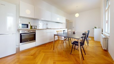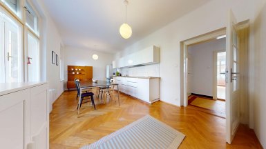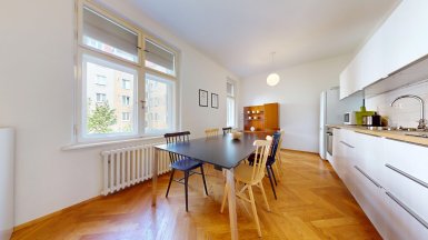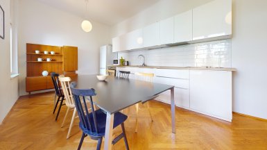 Prenájom unikátneho bytu so staromestskou atmosférou v historickej budove v absolútnom centre mesta na Vajanského nábreží, pri Dunajskom nábreží s promenádou a OC EUROVEA, hneď oproti Národnému múzeu a osobného Dunajského prístavu. ***** Výmera podlahovej plochy bytu vrátane príslušenstve je 105m2, byt je situovaný na 2. posch. s výhľadom do tichého vnútrobloku (preluka ul. Medená a Vajanského nábrežia.). ***** Byt dispozične pozostáva z 3 samostatných nepriechodných izieb a príslušenstva: vstupná hala, veľká obytná kuchyňa, komora, kúpeľňa, WC a pivnica. Byt bol komplexne zrekonštruovaný, vrátane výmeny elektroinštalácie a rozvodov. V izbách sú pôvodné kvalitne zrepasované drevené parkety, pôvodné drevené okná s originálnym kovaním, pôvodné kazetové drevené dvere. V priestrannej svetlej kuchyni s kuchynskou linkou s dostatkom úložného priestoru a veľkým jedálenským stolom je dostatok miesta pre stolovanie viacerých osôb. K dispozícii je komfortná kúpeľňa s veľkým sprchovým kútom, toaleta je oddelená. Byt je kompletne zariadený nábytkom ako je prezentované na foto. Interiér bytu bol citlivo zrekonštruovaný so zámerom zachovania pôvodných dobových historizujúcich prvkov, ktoré v byte vytvárajú nezameniteľnú atmosféru bývania staromestského charakteru. ***** Bytový dom sa nachádza na PRÉMIOVEJ ADRESE v jednej z najatraktívnejších častí Starého Mesta, v pamiatkovej zóne, hneď vedľa Dunajského nábrežia s rezidenčným projektom a luxusným nákupným centrom EUROVEA s revitalizovanou Dunajskou promenádou s rôznymi reštauráciami a kaviarňami. ***** Byt je k prenájmu ihneď voľný, je vhodný pre max. 4 osoby, alebo rodinu s deťmi. K inzerovanej mesačnej cene prenájmu 1.150,- eur bude pripočítaná vyúčtovateľná zálohová platba za energie 200,- eur. Platí sa provízia pre RK. ======================================== ___________________________________________________ Volajte alebo píšte ešte dnes, obhliadku nehnuteľnosti Vám radi zabezpečíme, aj cez víkend, tešíme sa na Vás. tel: +421 905 450 900, +421 905 100 105 e-mail: monika.novakova@ivmoreal.sk, ivmoreal@ivmoreal.sk ___________________________________________________ Fotografie, obrázky, texty a 3D virtuálna prezentácia sú autorským dielom a majetkom realitnej kancelárie IVMO & Partners, s.r.o. a podliehajú autorským právam.
