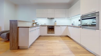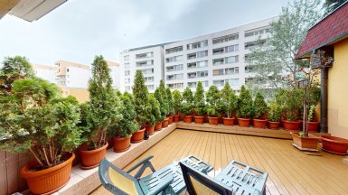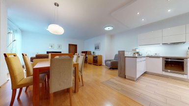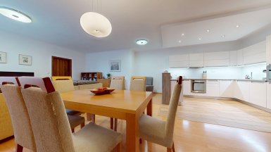 Z poverenia vlastníka ponúkame na predaj jedinečný 4 izb. byt s veľkou terasou a dvojgarážou v staršej novostavbe bytového domu na ul. Hany Meličkovej v mestskej časti Karlova Ves, lokalita Dlhé Diely, na skok do centra mesta... ***** Byt je situovaný na 2/6 posch., výmera podlahovej plochy bytu je 125,69m2 + TERASA 38m2, k bytu patrí uzamykateľná dvojgaráž s vjazdom na RC v suterénnej garáži domu o výmere 32,07m2 v cene 40.000,- eur dostupná výťahom. ***** Byt je svetlý a slnečný s prevládajúcou JZ orientáciou. Byt má praktické dispozičné riešenie a pozostáva zo vstupnej haly, priestrannej obývačky prepojenej s kuchynskou a jedálenskou časťou, troch samostatných izieb/spální, komfortnej kúpeľne s vaňou, sprchovým kútom a toaletou, komory, hosťovskej toalety s umývadlom a terasy. Vstup na terasu je z obývačky aj z rodičovskej spálne..... ***** Byt je kompletne klimatizovaný, k vybaveniu bytu patrí elegantná nadčasová kuchynská linka s dostatkom úložného priestoru so stropným podhľadom so štýlovým bodovým osvetlením, šatníkové systémy rolldoor na mieru v spálni rodičov a vo vstupnej hale, interiérové dvere z kvalitného masívu (pri vstupe do obývačky čiastočne presklenné dvojkrídlové), v izbách sú drevené parketové podlahy v ostatných častiach bytu je položená keramická dlažba. Byt má výmenník tepla (dom má vlastnú kotolňu), v kúpeľni je podlahové vykurovanie. Okná bytu sú vybavené exteriérovými aj interiérovými žalúziami, byt má videovrátnik. ***** Prednosťou bytu je veľká terasa s prívodom vody aj elektriny, po obvode z dvoch strán terasy sú zabudované kompaktné podstavce na okrasnú zeleň, podlaha terasy je z terasových kompozitných dosiek.. Vďaka nadštandardnej výmere je terasa ideálnym miestom na príjemné letné posedenia a grillparty s rodinou a priateľmi. ***** Bytový dom má originálnu architektúru, je charakteristický kaskádovými terasami s výhľadom na Rakúsko.... je vo výbornej technickej kondícii. Za domom sa nachádza veľká zelená plocha s parkovou úpravou, na prízemí domu sú situované rôzne prevádzky obchodu a služieb ...v pešej dostupnosti sú potraviny BILLA, Tesco Expres, pizzeria, kvetinárstvo, trafika.....pred bytovým domom je vyhradené parkovisko pre vlastníkov bytov v dome a návštevníkov. Lokalitu možno považovať za širšie centrum mesta s výborným dopravným napojením do absolútneho centra (cca 5-7 min. autom alebo MHD - zastávka vedľa domu), na diaľničný obchvat... Lokalita je na skok k obľúbenej Karloveskej lodenici a Devínskej hrádzi s cyklotrasou až do Vysokej pri Morave alebo Cyklomostom slobody do Rakúska. ***** Byt je ideálny na kúpu pre rodinu s deťmi ( v dosahu MŠ, ZŠ, výborné gymnázium L. Sáru a na Tilgnerovej ul. v Karlovej Vsi. ***** Cena bytu je 555.000,- eur + cena dvojgaráže 40.000,- eur (nie je podmienkou odkúpenia spolu s bytom). Inzerovaná cena zahŕňa províziu pre RK, vrátane zabezpečenia kompletného právneho servisu (vypracovanie zmlúv spojených s prevodom nehnuteľností na príslušnom katastri. ___________________________________________________ Volajte alebo píšte ešte dnes, obhliadku nehnuteľnosti Vám radi zabezpečíme, aj cez víkend, tešíme sa na Vás. tel: +421 905 450 900, +421 905 100 105, e-mail: monika.novakova@ivmoreal.sk, ivmoreal@ivmoreal.sk ___________________________________________________ Text, fotografie, pôdorys a 3D virtuálna prezentácia sú autorským dielom a majetkom spoločnosti IVMO Pullman Group, s.r.o. a podliehajú autorským právam.