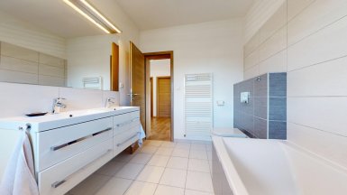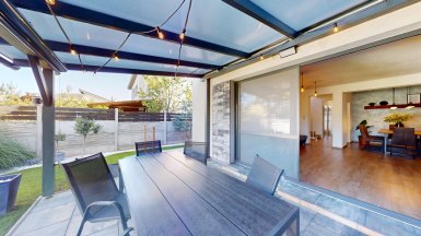 Predaj komfortného 4izb. rodinného domu 120m2, ktorý je súčasťou dvojdomu ( dve samostatné bytové jednotky) v Slovenskom Grobe, v jedinečnej lokalite "Malý Raj", ul. Stromová, druhá ulička od jazera, v blízkosti unikátnej prírodnej rezervácie Šúrsky les" len 13km od Bratislavy a 5km od Pezinka. ***** Rodinný dom bol kolaudovaný v r. 2017, je murovaný z dutej tehly, zateplený, napojený na všetky IS, dvojpodlažný (prízemie a poschodie), výmera podlahovej plochy je 116,50m2 + balkón 3,50m + terasa 20m2. Zastavaná plocha je 78m2 + záhrada k bytu 236m2 (spolu pozemok 314m2), dve vonkajšie parkovacie miesta na pozemku. ****** DISPOZIČNÉ RIEŠENIE: prízemie: zádverie + schodisko, kuchyňa, jedáleň, kúpeľňa s WC, komora, obývacia izba so vstupom na záhadnú terasu. poschodie: chodba, 3 x izba (z toho jedna s balkónom), kúpeľňa s WC a technická miestnosť. ****** Vykurovanie a ohrev vody zabezpečený kondenzačným kotlom zn. Protherm (v októbri prejde kompletným servisom), podlahové kúrenie na prízemí a radiátory na poschodí v každej miestnosti. Spodná kúpeľňa bola kompletne prerobená v r. 2022. Na hornom poschodí je vnútorná klimatizačná jednotka s primárnym chladením celého horného podlažia (3,5kw značka Vivax model R design možnosť inteligentného ovládania cez wifi), termostat n akaždom podlaží s možnosťou ovládania cez wifi. ***** Krytá terasa cca 20 m2 so zatienením screenovou roletou, výsuv cca 4m pre lepší komfort cez horúce dni. Bezpečnostná kamera snímajúca parkovací priestor. Elektrický vrátnik. Exteriérové žalúzie na 5 oknách celé horné podlažie okrem balkónových dverí a dole na kuchynskom okne. ***** Kopaná studňa cca 5,5m hlboká, priemer 1m s dostatkom vody komfortné zalievanie záhrady. Pozemok je oplotený betónovým plotom. Predná časť pozemku od cesty je oddelená murovaným plotom z tvárnic a bránou na diaľkové ovládanie. Záhrada je starostlivo udržiavaná s okrasnou výsadbou. ***** Dom je postavený v novovybudovanej vilovej štvrti v zástavbe nových rodinných domov, lokalita "Malý raj" s pravidelnou medzimestskou autobusovou linkou "z" a "do" BA. Obec Slovenský Grob disponuje rozsiahlou občianskou vybavenosťou vrátane materskej škôlky, základnej školy, banky a rôznych prevádzok obchodu a služieb, jazero s oddychovou zónou, outdoorový fitpark, kaviareň, cukráreň, pizzeria, kaderníctvo, Packeta, zubná hygiena atď. Rodinný dom sa nachádza hneď v druhej uličke od JAZERA s oddychovou zónou, s BBQ posedením a detským ihriskom. ***** Obec Slovenský Grob je v celom Malokarpatskom regióne preslávená organizovaním tradičných husacích hodov, nachádza sa v blízkosti prírodnej rezervácie Šúrsky les s viacerými náučnými chodníkmi a obľúbenými cyklotrasami, ideálne miesto na rekreačné a športove aktivity pre rodiny s deťmi. Z lokality je výborné napojenie na diaľničný obchvat "D1". ***** Inzerovaná cena je vrátane provízie pre RK a zahŕňa zabezpečenie kompletného právneho servisu spojeného s prevodom nehnuteľností na príslušnom katastri. ––––––––––––––––––––––––––––––––––––––––––––––––––– Volajte alebo píšte ešte dnes, obhliadku nehnuteľnosti Vám radi zabezpečíme, aj cez víkend. tel: +421 905 450 900, +421 905 100 105 e-mail: monika.novakova@ivmoreal.sk ––––––––––––––––––––––––––––––––––––––––––––––––––– Text, fotografie a 3D virtuálna prezentácia sú autorským dielom a majetkom realitnej kancelárie IVMO Pullman Group, s.r.o. a podliehajú autorským právam.
